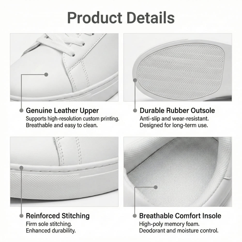 ✔ Upper: Genuine leather finish – breathable & easy to clean