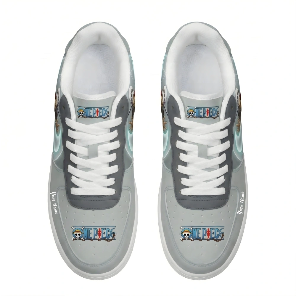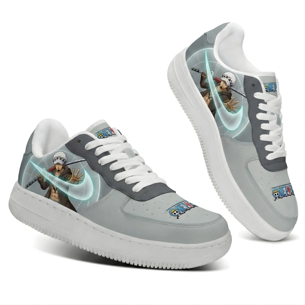 Inspired by Trafalgar Law, the Surgeon of Death from One Piece, these custom sneakers are made for fans who prefer a clean, calm, and powerful aesthetic.