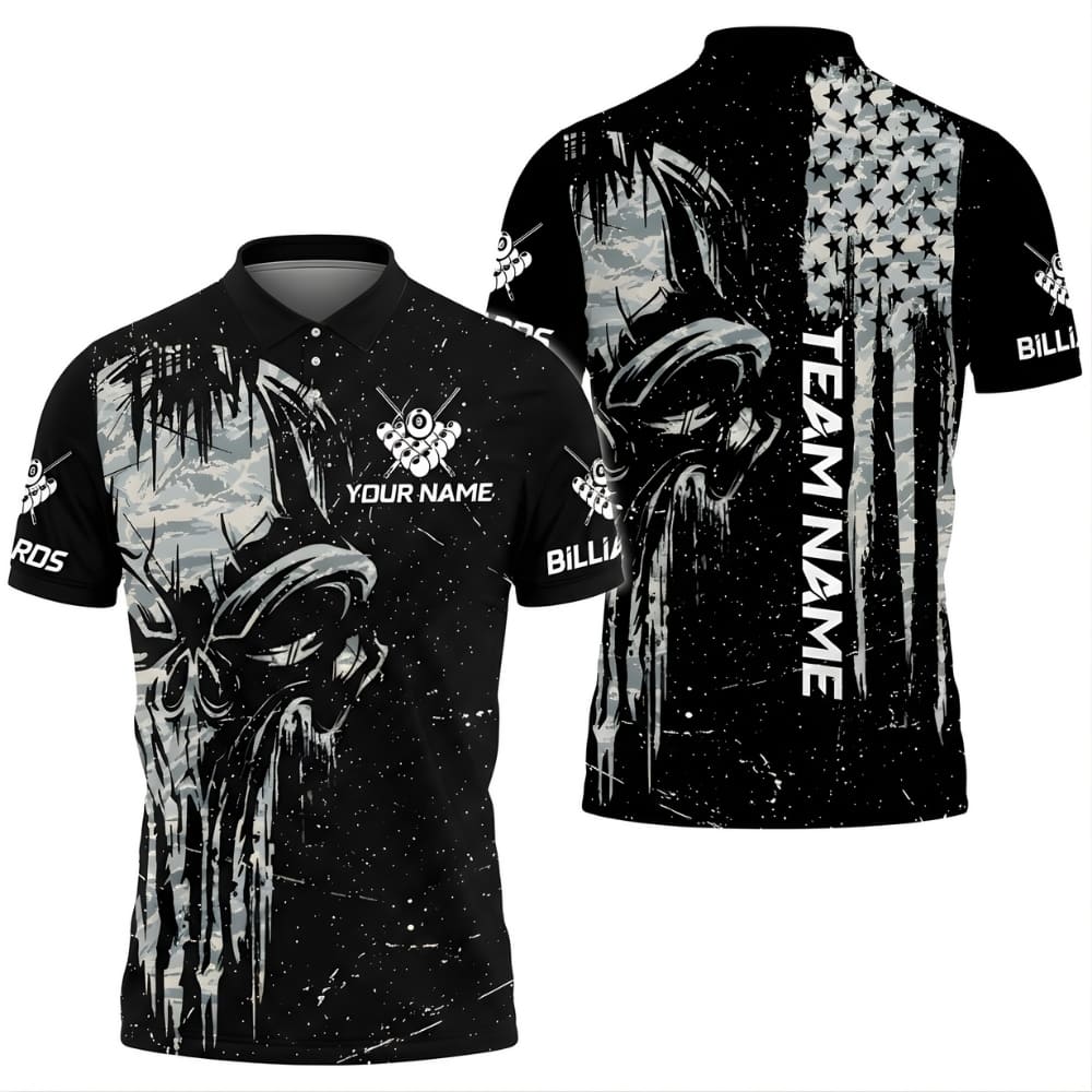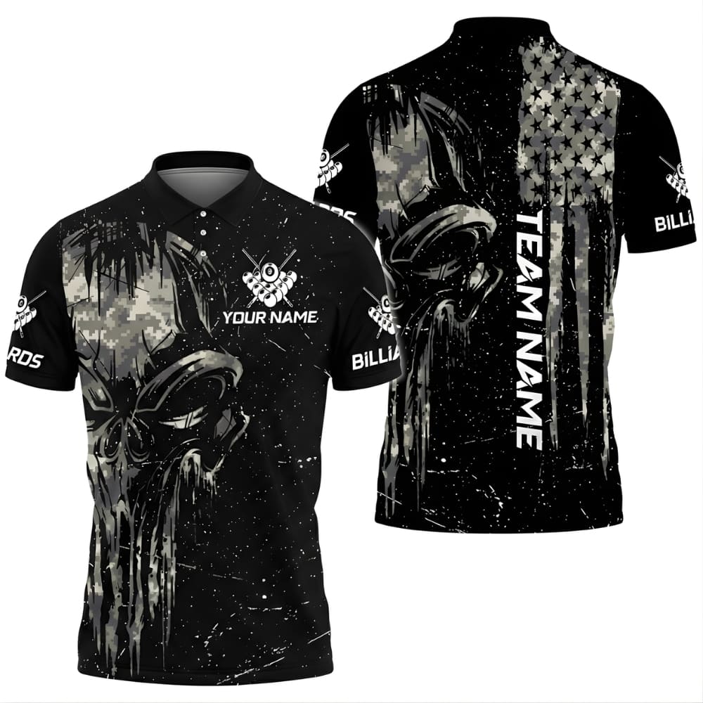 Stand out at the pool hall with this skull camo billiards shirt, featuring bold tactical artwork and a fierce competitive look.