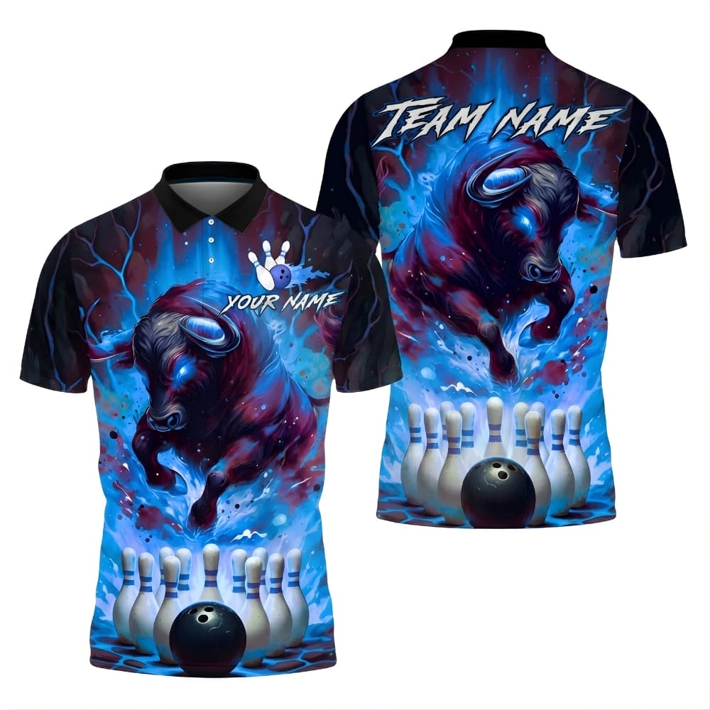 Fire Bull Bowling Polo Shirt – Custom Name & Team | Strike Force Bowling Shirt