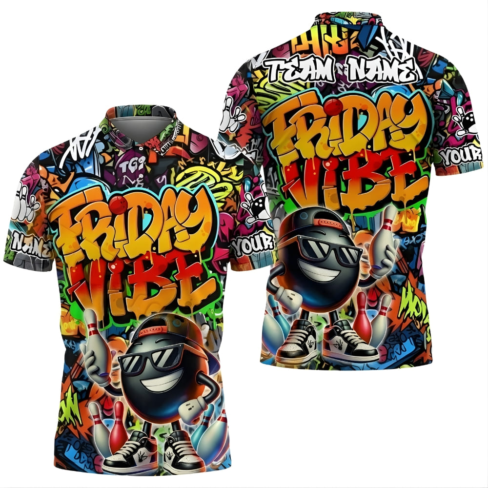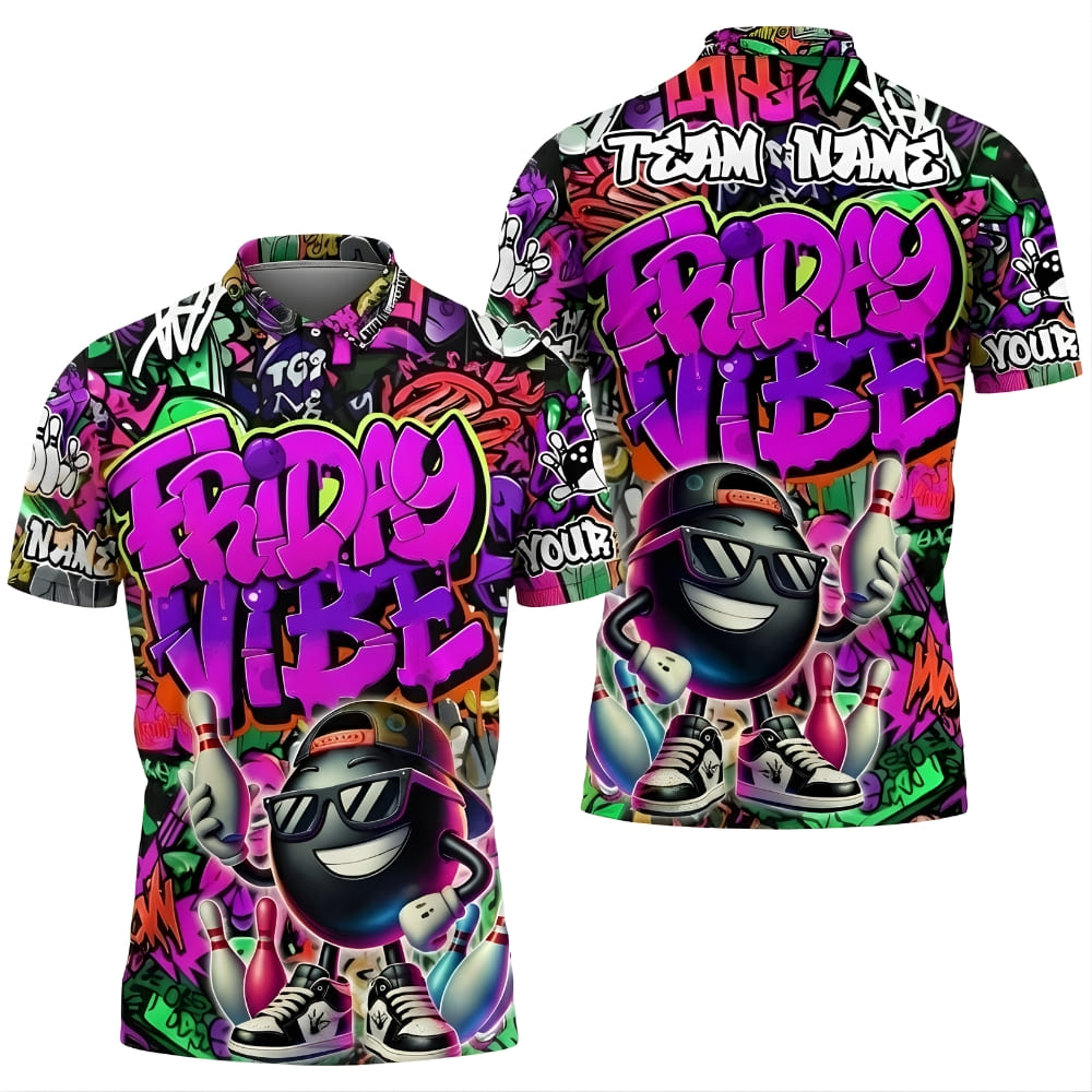 Bring bold energy to the lanes with this Friday Vibe custom bowling polo shirt.
