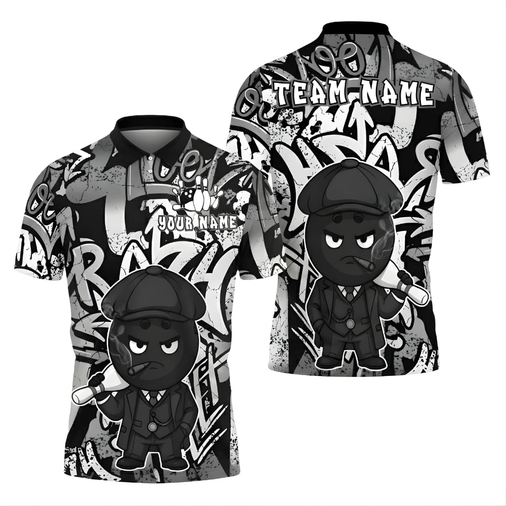 Stand out on league night with this graffiti gangster bowling polo shirt, featuring bold street-art graphics and a tough attitude design.