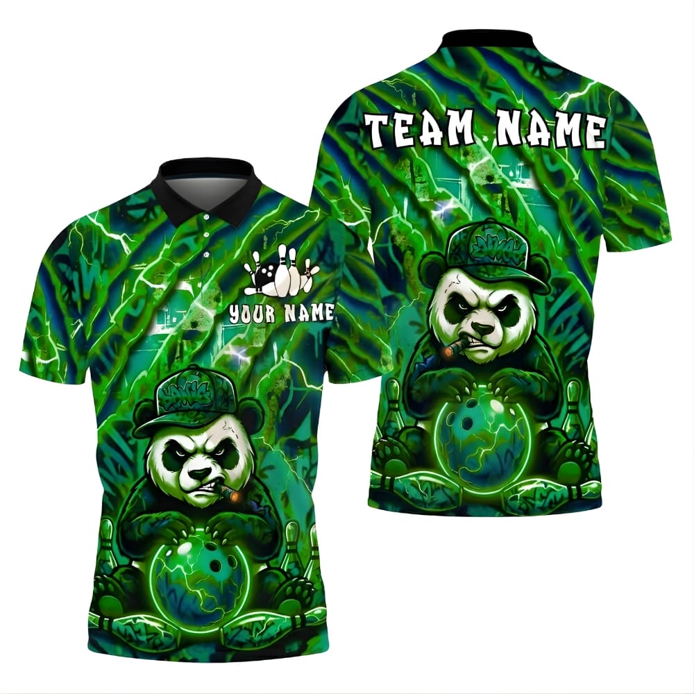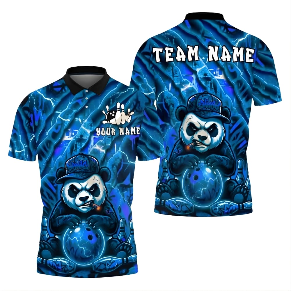 This panda bowling polo shirt features a bold lightning design with a powerful, edgy vibe. Custom name and team name printing makes it perfect for bowling leagues, tournaments, or team uniforms. Lightweight fabric keeps you comfortable game after game.