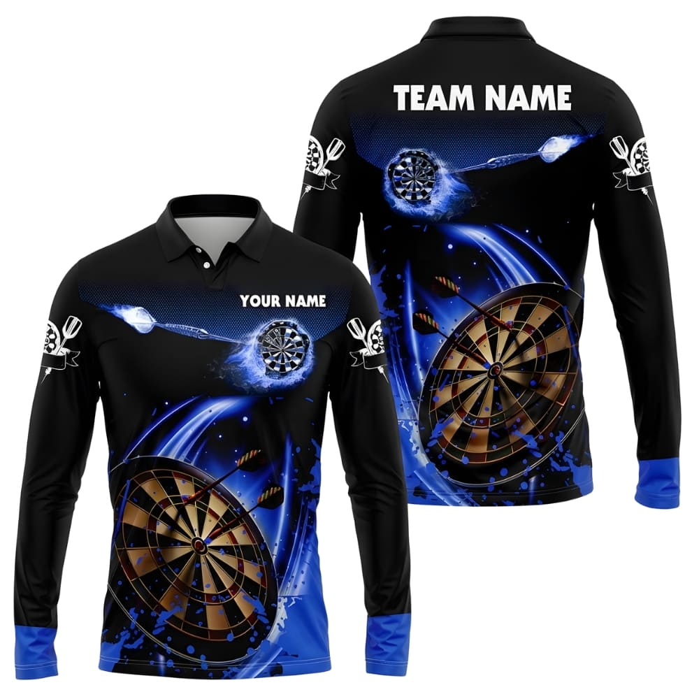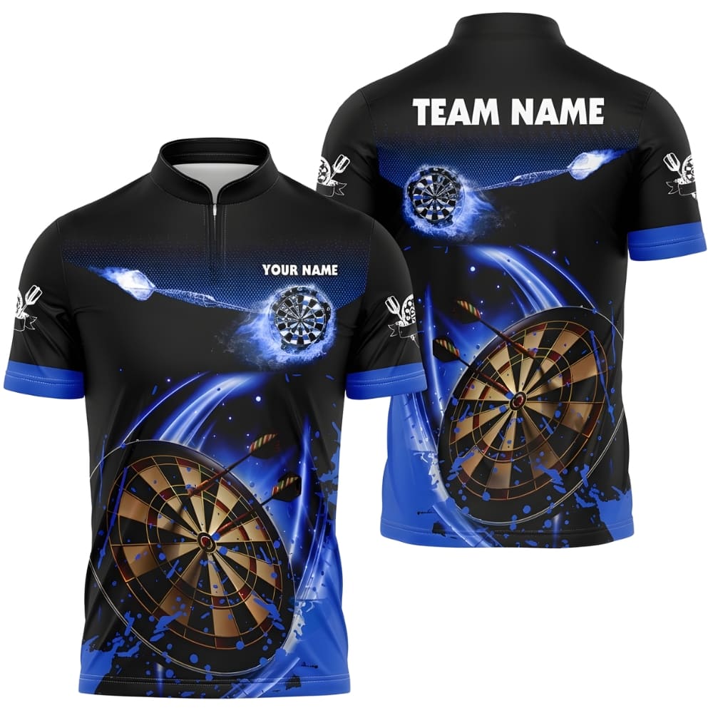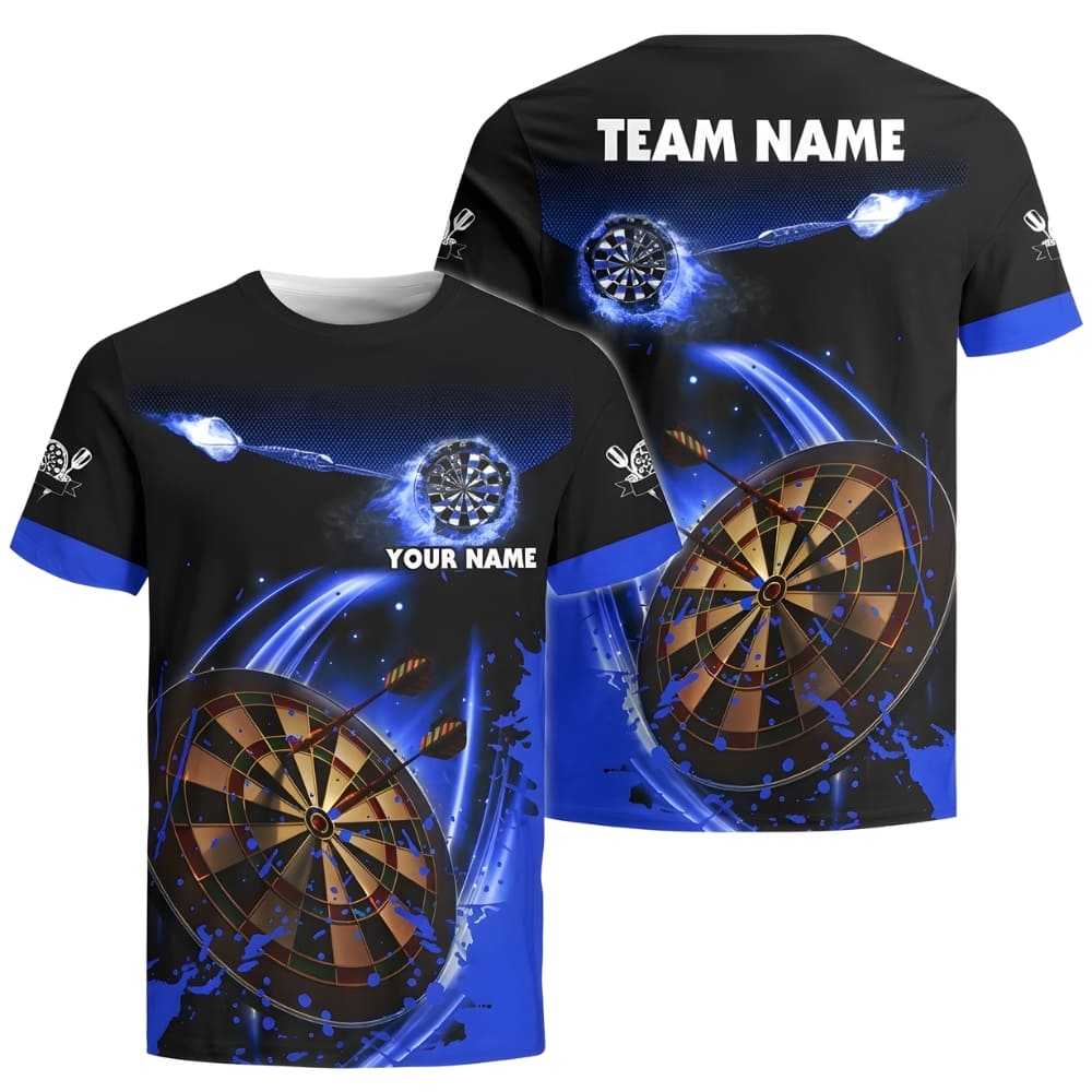 Stand out on dart night with this custom darts jersey featuring a dynamic blue & black dartboard design. Fully personalized with your team name and player name, perfect for leagues, tournaments, or practice sessions. Lightweight, breathable fabric ensures comfort and sharp performance every throw.