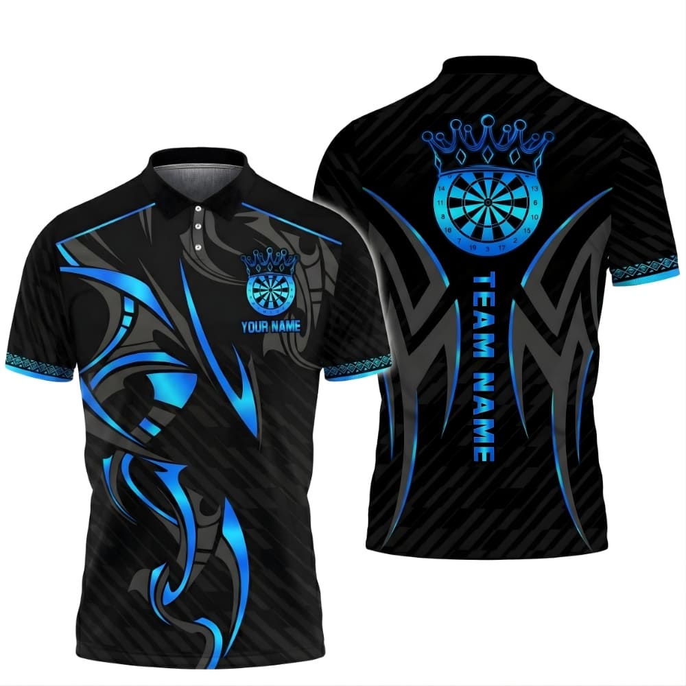 Stand out at every darts match with this custom darts jersey, featuring a premium crown dartboard design and full personalization for your name and team name.