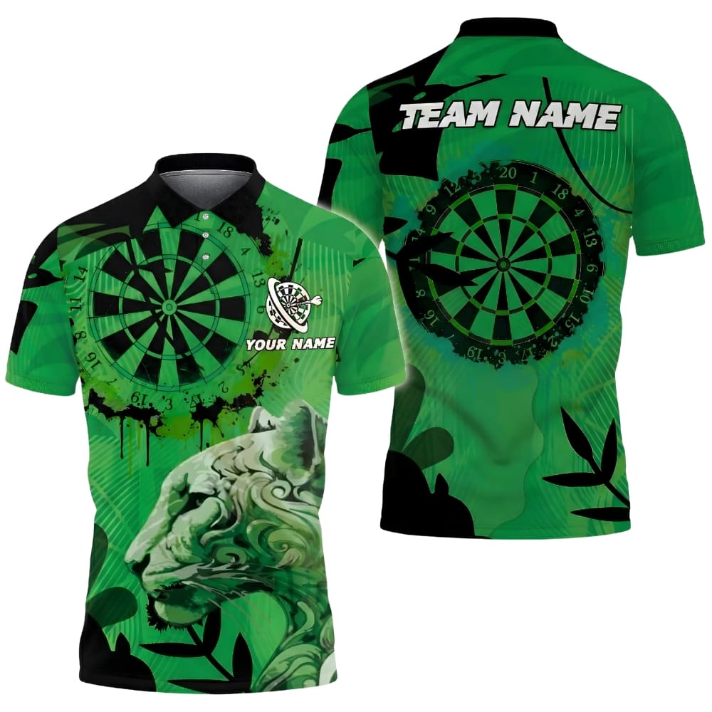 Custom Darts Polo Shirt – Leopard Dartboard Art Design – Personalized Team Name & Player Name – Unisex Darts Team Jersey