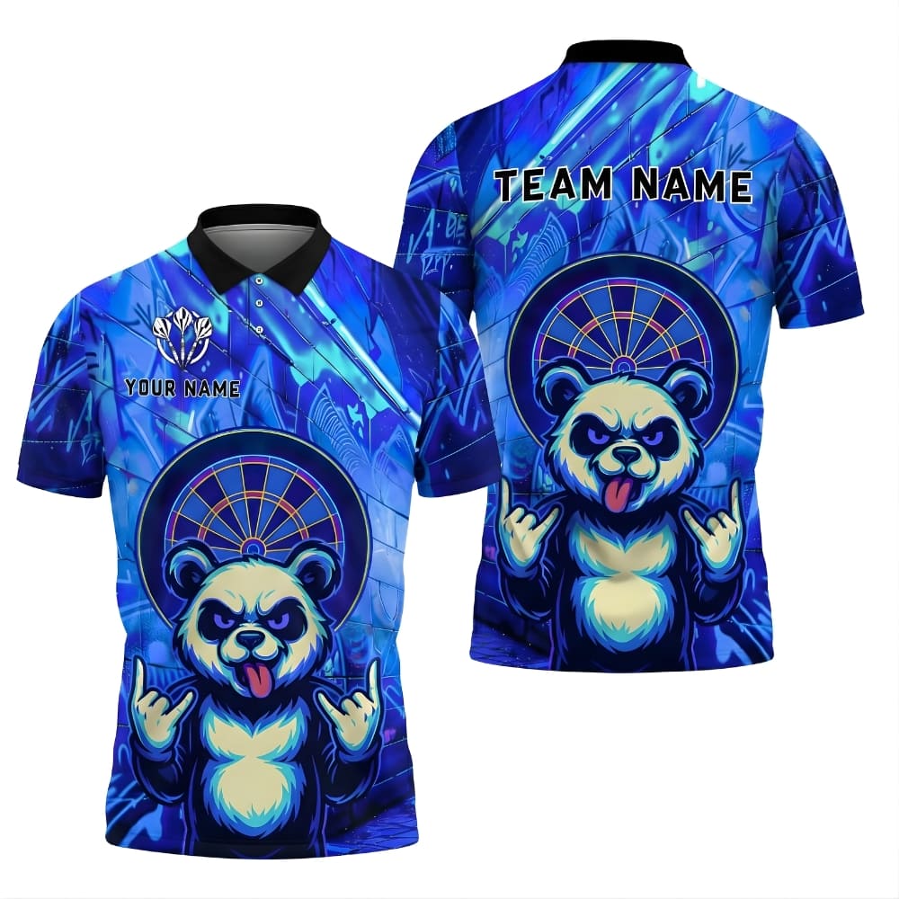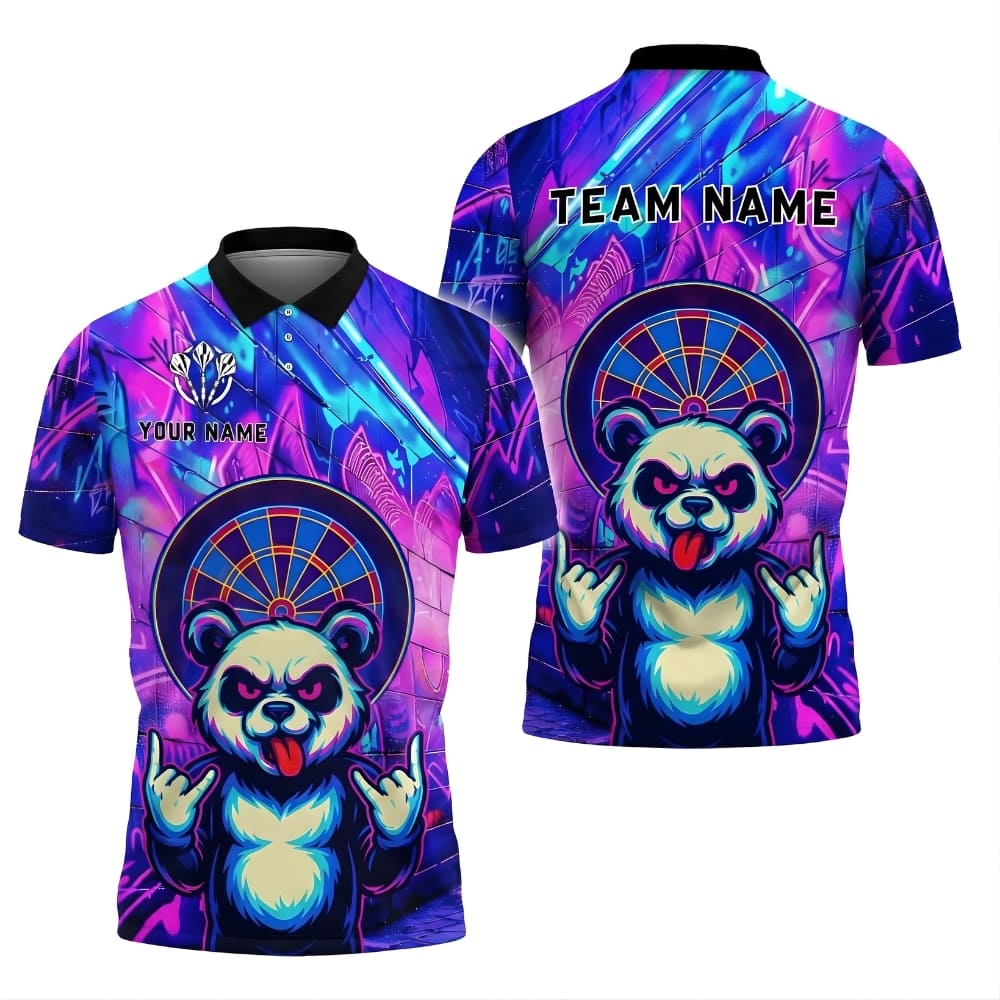 Stand out at every match with this custom darts polo shirt featuring a bold panda dartboard graphic. Personalize with your name and team name for league play, tournaments, or casual darts nights. Breathable fabric and all-over print make it perfect for serious darts players and teams.