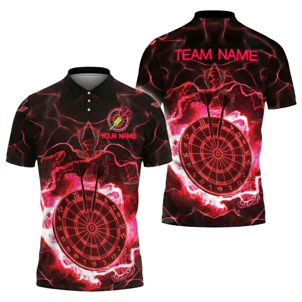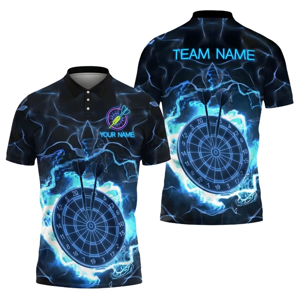 High-quality custom darts shirt designed for dart players and teams. Featuring bold dartboard graphics with electric effects, fully customizable with team name and player name. Ideal for dart leagues, tournaments, pub dart nights, and serious darts enthusiasts.