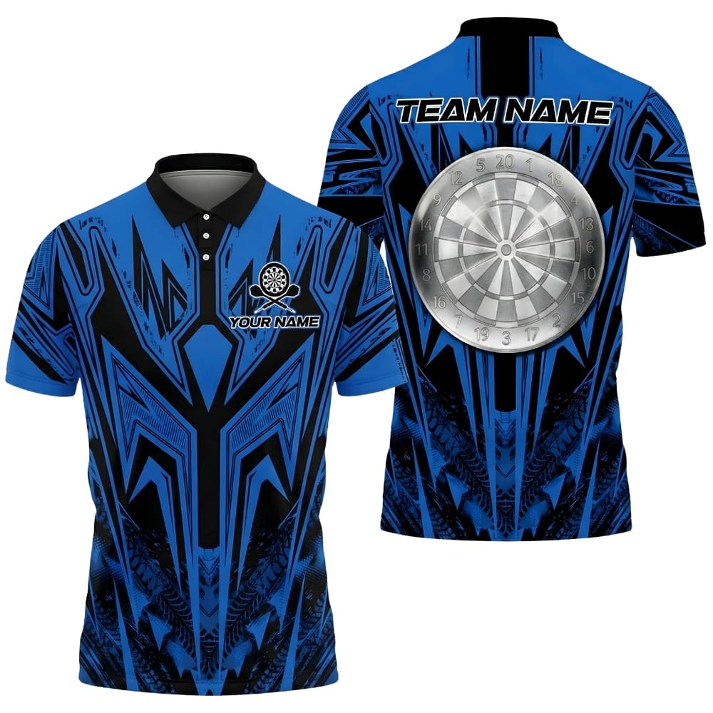 Premium custom darts polo shirt designed for dart teams and league players. Fully personalized with team name and player name, featuring bold dartboard graphics and a modern athletic fit. Perfect for tournaments, pub leagues, and competitive dart matches.