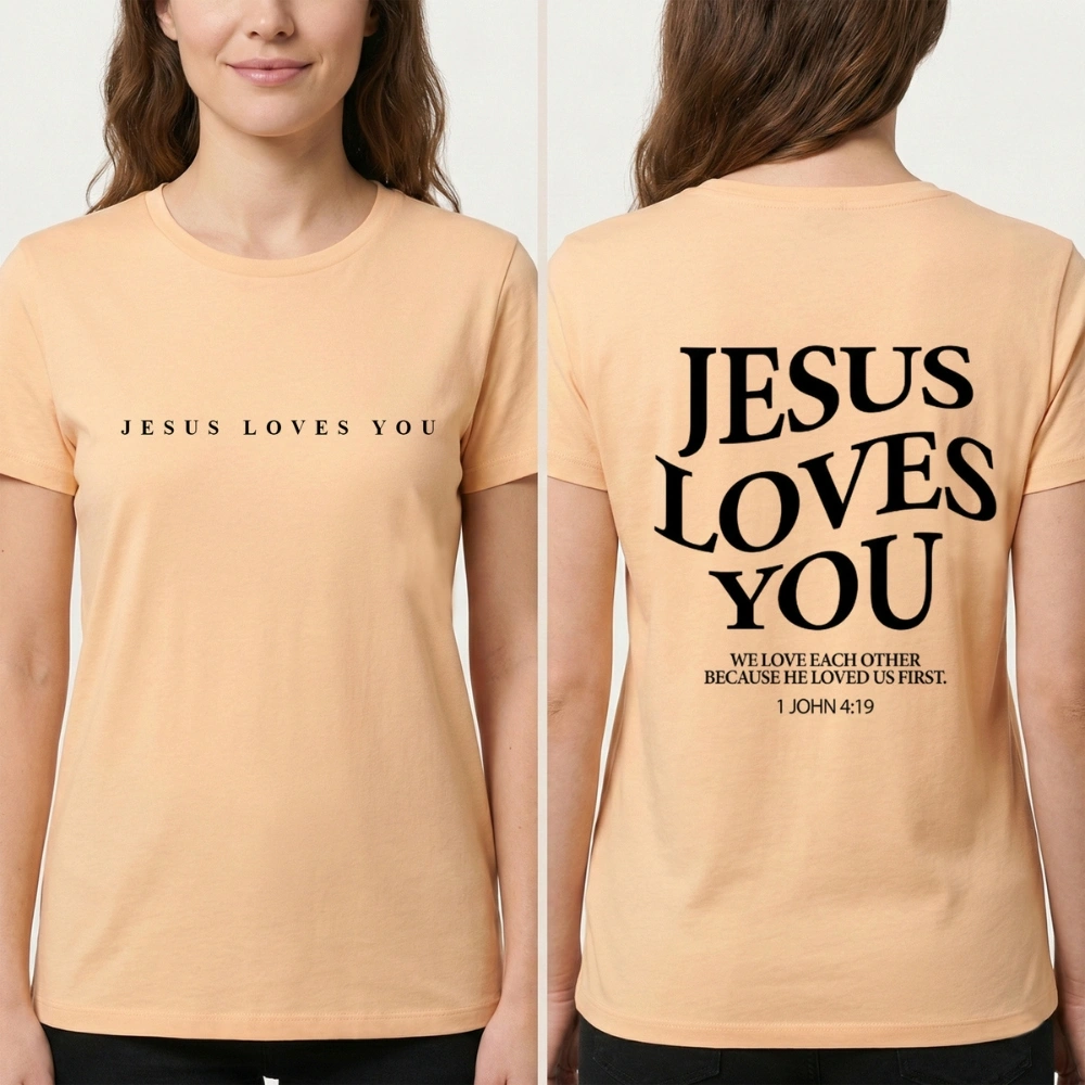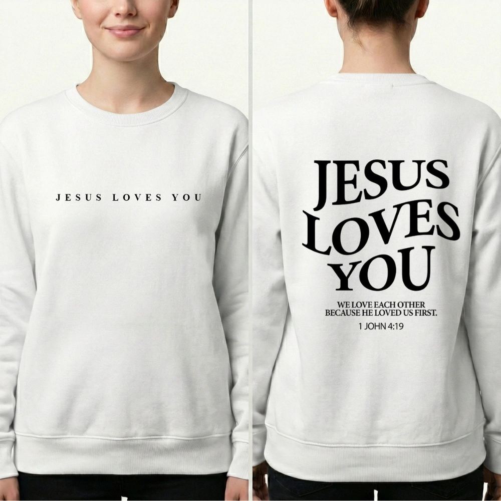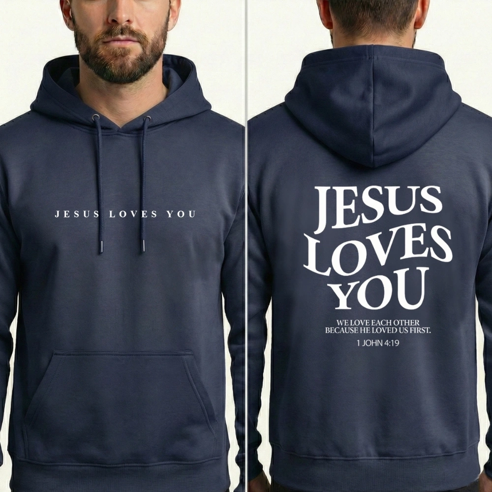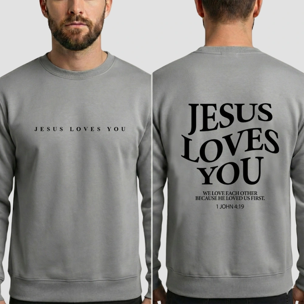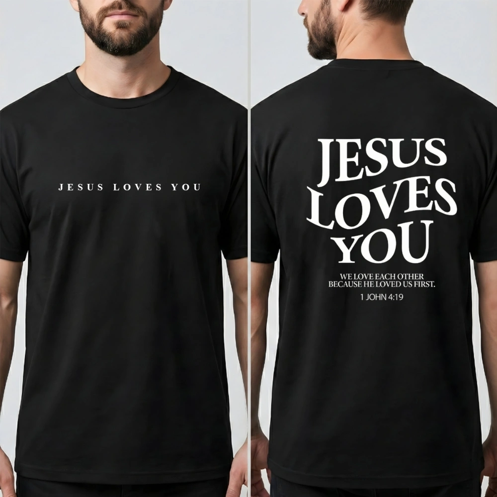 “Jesus Loves You” is more than words—it’s a reminder that no matter where you are in life, you are seen, known, and loved. The small verse on the back, 1 John 4:19, grounds the message in Scripture with quiet depth.