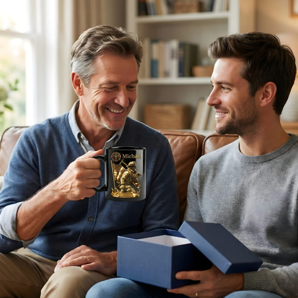 A personalized coffee mug designed to honor dads who proudly serve as firefighters. Featuring a bold firefighter-inspired artwork and a custom name, this mug represents courage, dedication, and pride—turned into a practical gift he can enjoy every day.