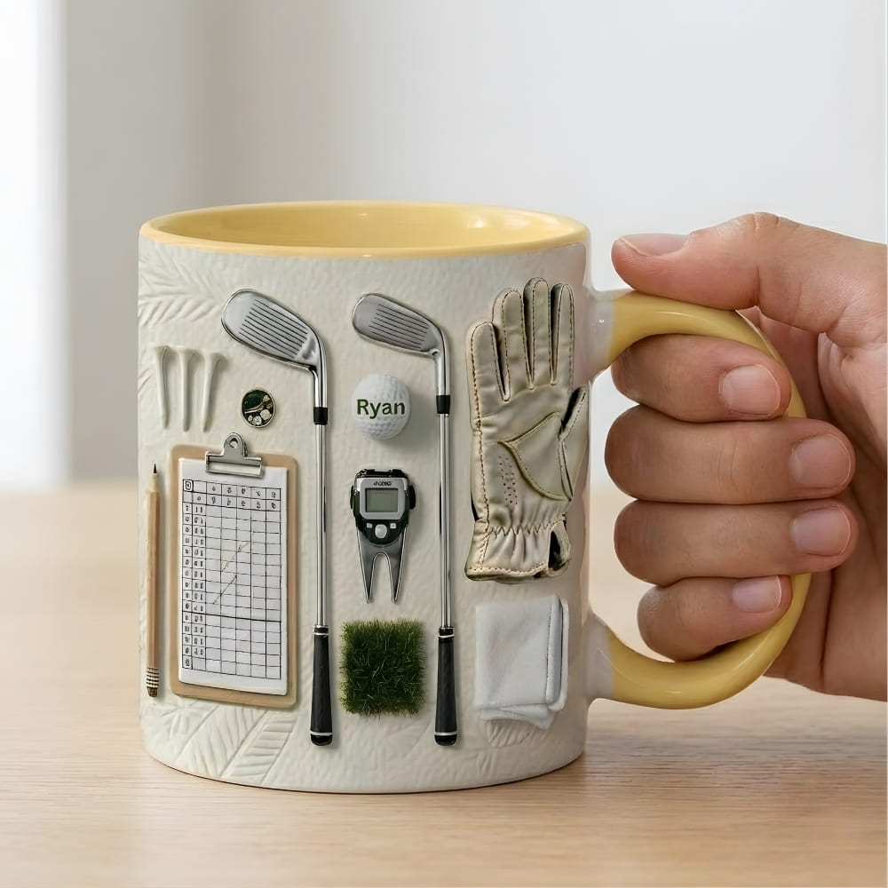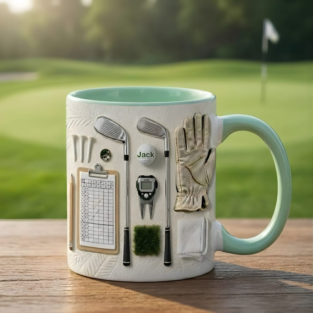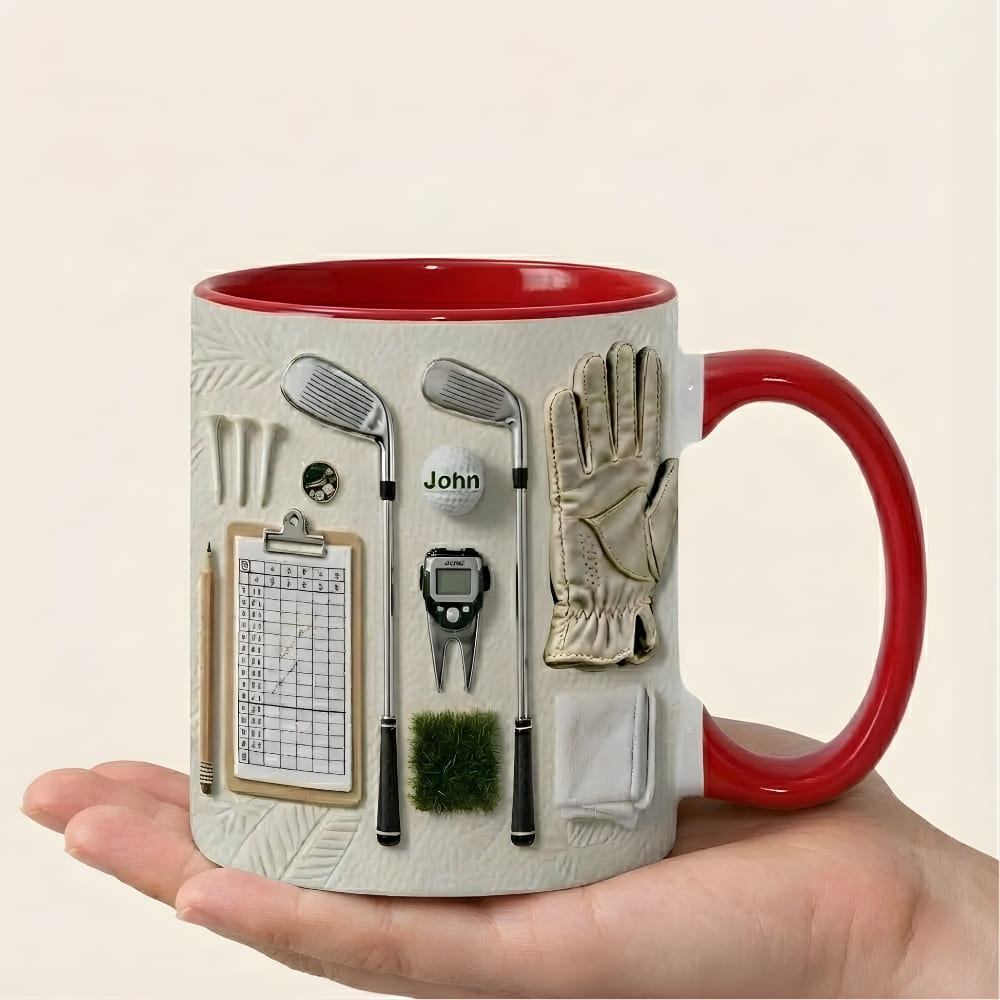 Personalized Golf Coffee Mug for Dad – Custom Name Golf Mug (Flat Print) Gift for Dad