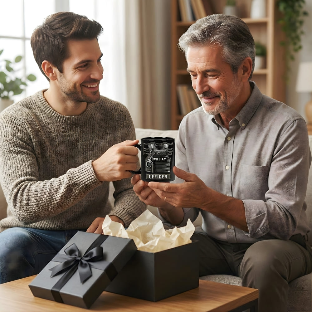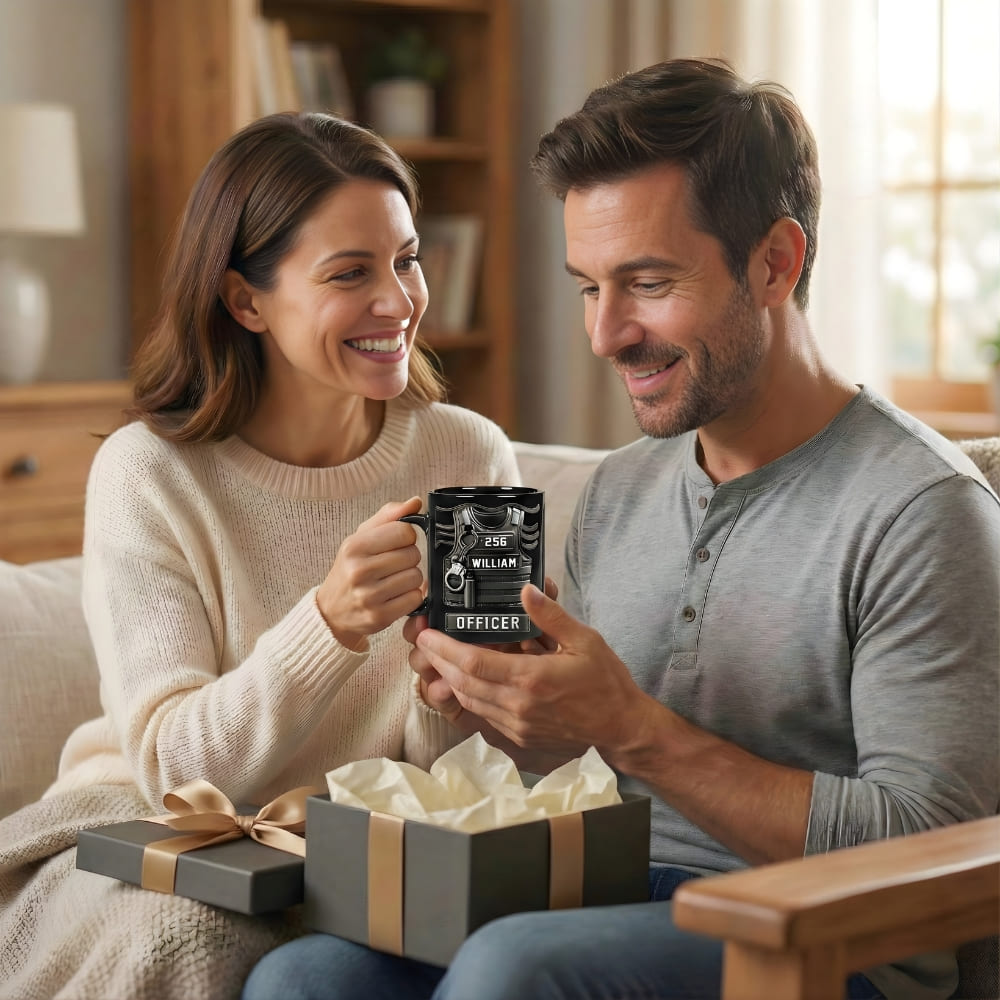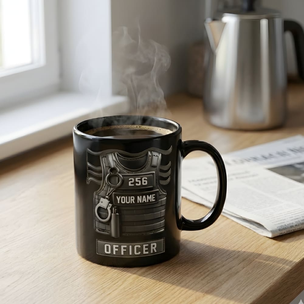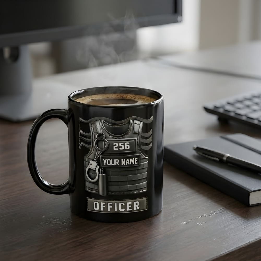Personalized Police Officer Coffee Mug for Dad – Custom Name Tactical Vest Mug (Flat Print) Gift for Dad